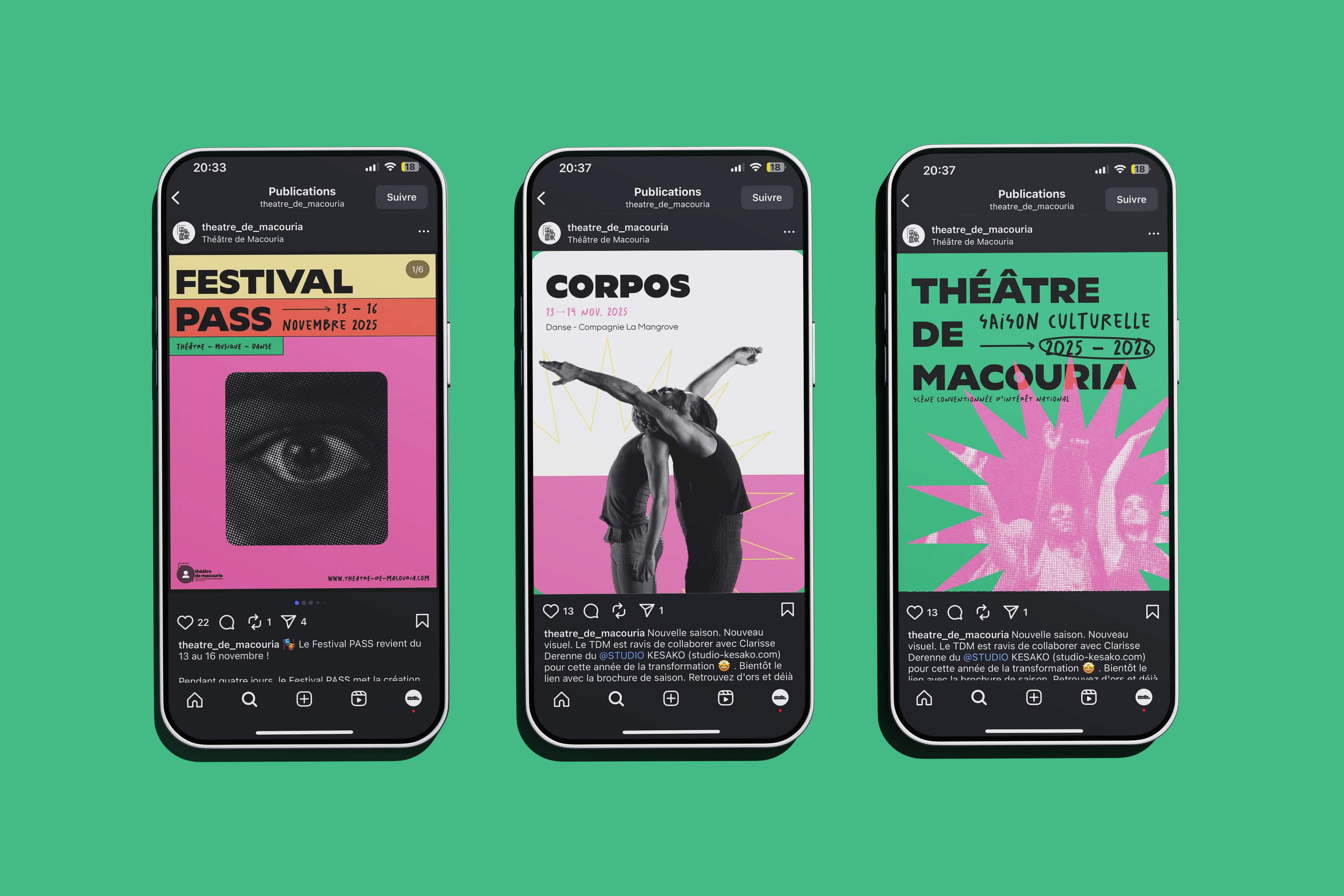 Pour la saison culturelle 2025-2026, la demande était la réalisation de l'affiche principale de la saison ainsi qu'une brochure. Les mêmes supports ont été réalisé pour leur festival PASS qui a lieu du 13 au 16 novembre 2025.